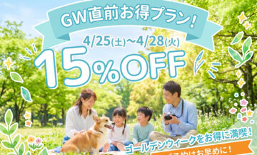 お知らせ【GW直前お得プラン】4/25~28がオトク♪4日間限定で15%OFF!早い者勝ち! -